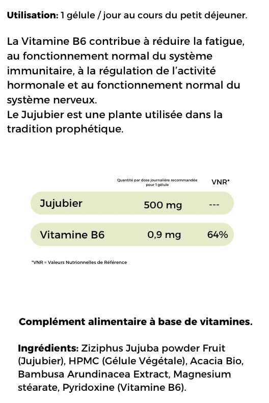 🍃 Extrait de Jujubier 500 mg – Vitamine B6